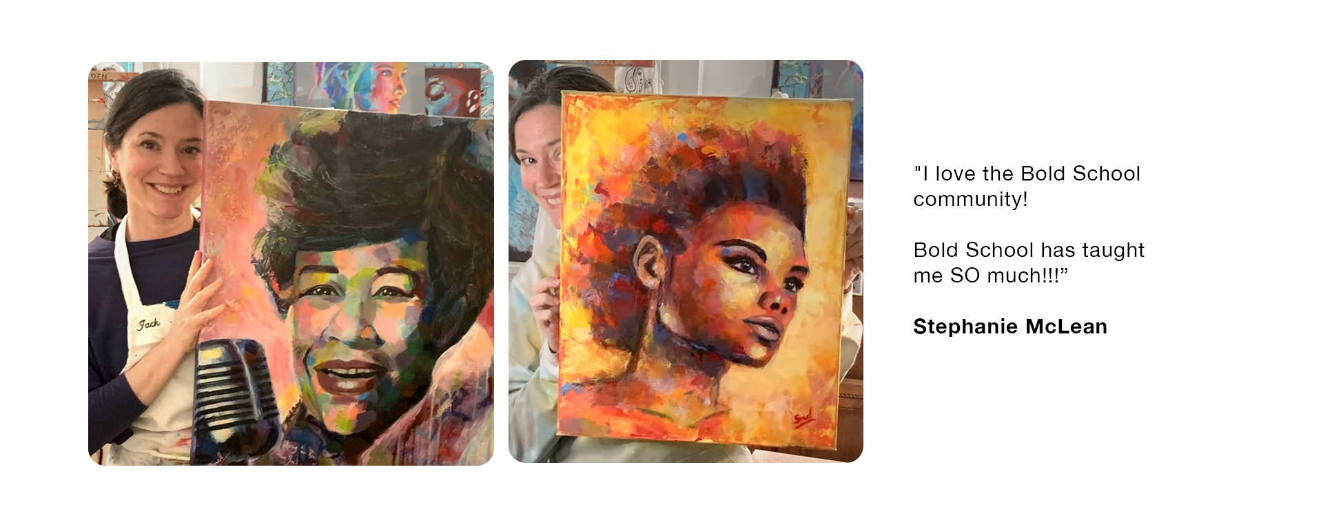 What you’ll learn in Bold School is based on over 20 years of experience in the art world and a decade of teaching her process both in person and online.