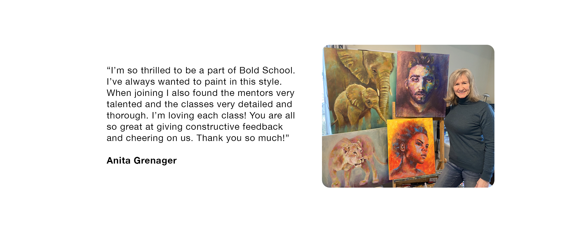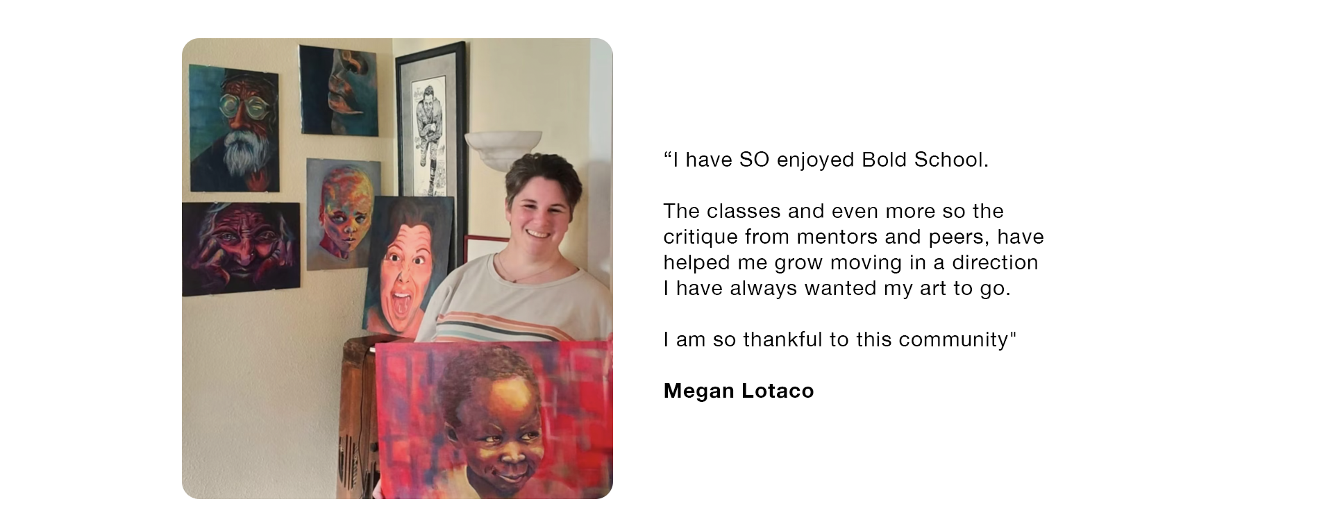 "I'm proud to be a student with Bold School. I finally found realism blended with my hyper color style.